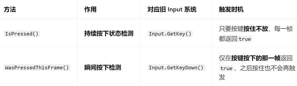 这样,角色控制器、相机控制器等代码不用关心 Input Actions 的读值细节,也不用关心平台差异(键鼠/手柄/触屏),直接消费这些属性即可