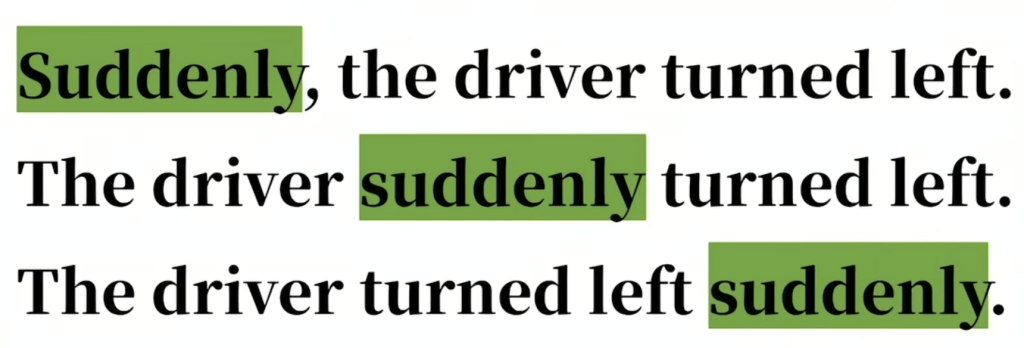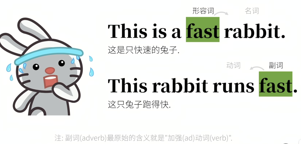 此外,方式副词可以出现在句首,句中,句末。但并不是所有副词都可以这样,比如上面的fast