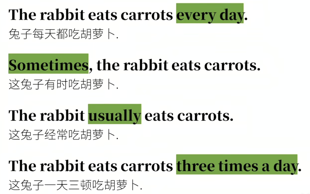 The rabbit has already eaten some carrots 这兔子已经吃了些胡萝卜(带有 “动作在预期时间之前就完成了” 的意味)