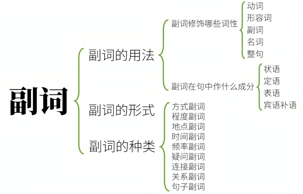 限定动作的频率。大多位于动词之前,be动词/助动词/情态动词之后