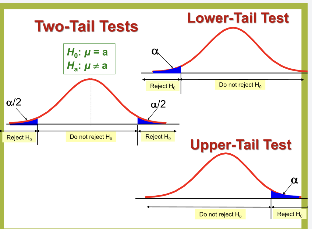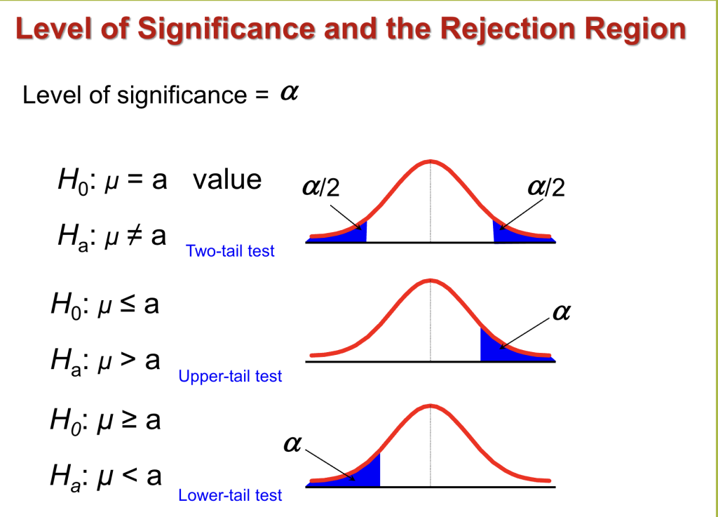 • Hₐ(备择假设 Alternative): 希望提供证据支持的假设(备择假设取决于当我们想要哪一个方向的结论)