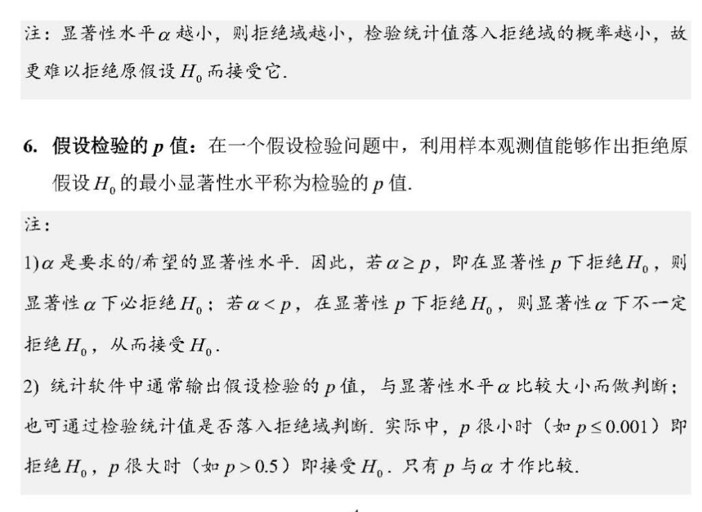 • 显著性水平α:指在假设检验中,当原假设 H₀ 为真时,错误拒绝 H₀ 的最大允许概率(即第一类错误概率)。