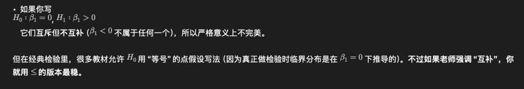 QA:回归检验也要求H1和H0互补吧,可是有的题目并没有互斥互补只是互斥关系