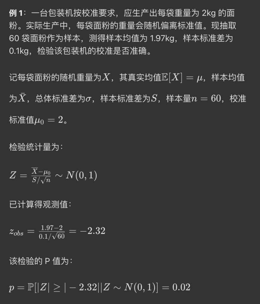 注:假设检验只通过一组样本值进行,在数学上并不能证明一个命题一定成立,但可以作为反例推翻一个命题。当检验统计量 T 落入拒绝域而拒绝原假设 H0​ 时,我们把握是比较大的。而当检验统计量 T 未落入拒绝域,严格意义上称为 “没有充分理由拒绝”,所以认为 H0​ 成立。