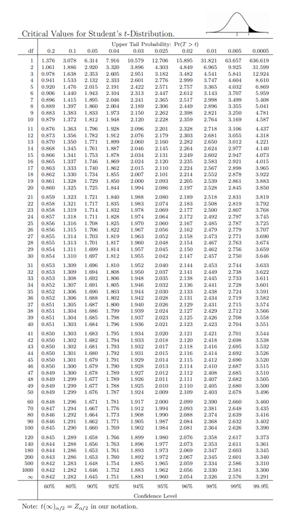 \(t = \frac{\bar{X} – \mu_0}{s/\sqrt{n}} = \frac{4001 – 4000}{200/\sqrt{100}} = \frac{1}{20} = 0.05\)