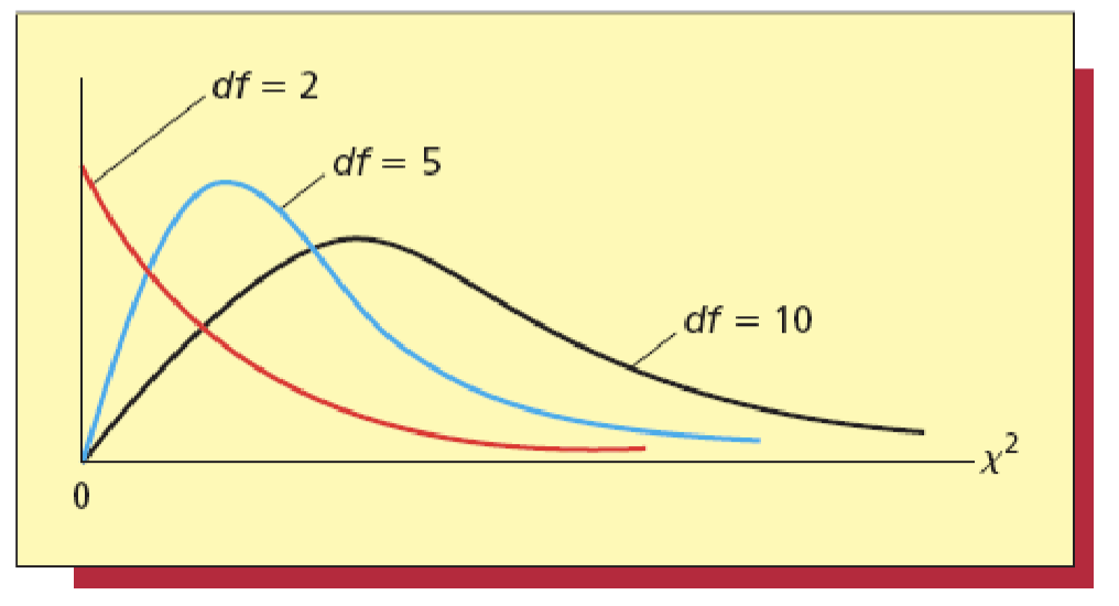 • 卡方(χ2)分布的形态取决于自由度的大小