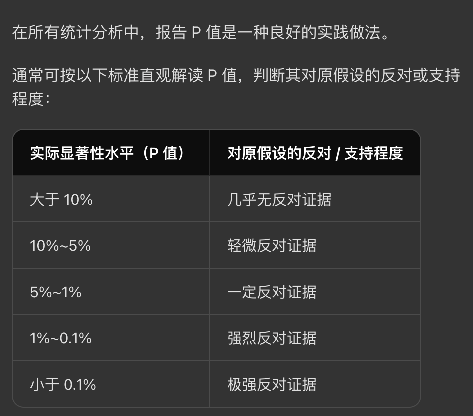 决策:由于 P 值 = 0.012 < α=0.05,我们拒绝 \(H_{0}\)。