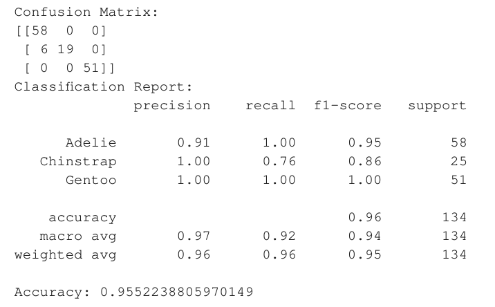 在上述案例中,我们尝试利用企鹅的生理特征数据对其物种进行分类。