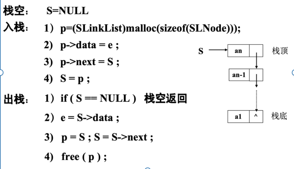✓ 初始条件: 栈S已经存在且非空