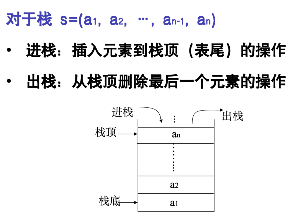 表尾称为栈顶top,表头又称为栈底
