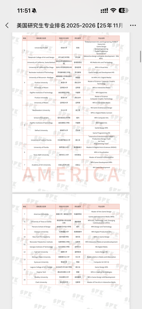 • 作品集是必须的,即便没有要求,有这个也很加分。申请的作品集很独特,侧重你擅长的部分,偏重不一样,不是美术那类的。作品集要有合作的和单人的,故事梗概要有。