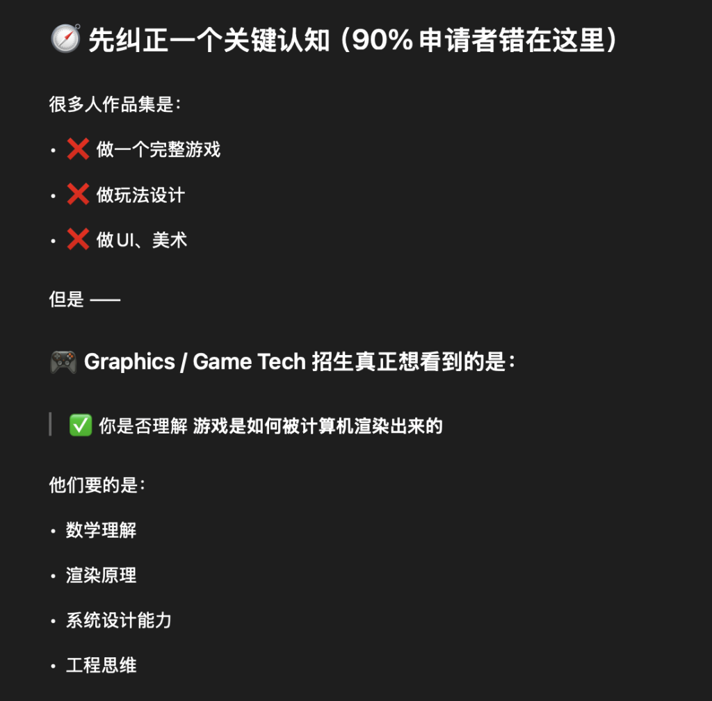 按照GPT的说法,游戏 / 图形学硕士 = 80% 看作品集