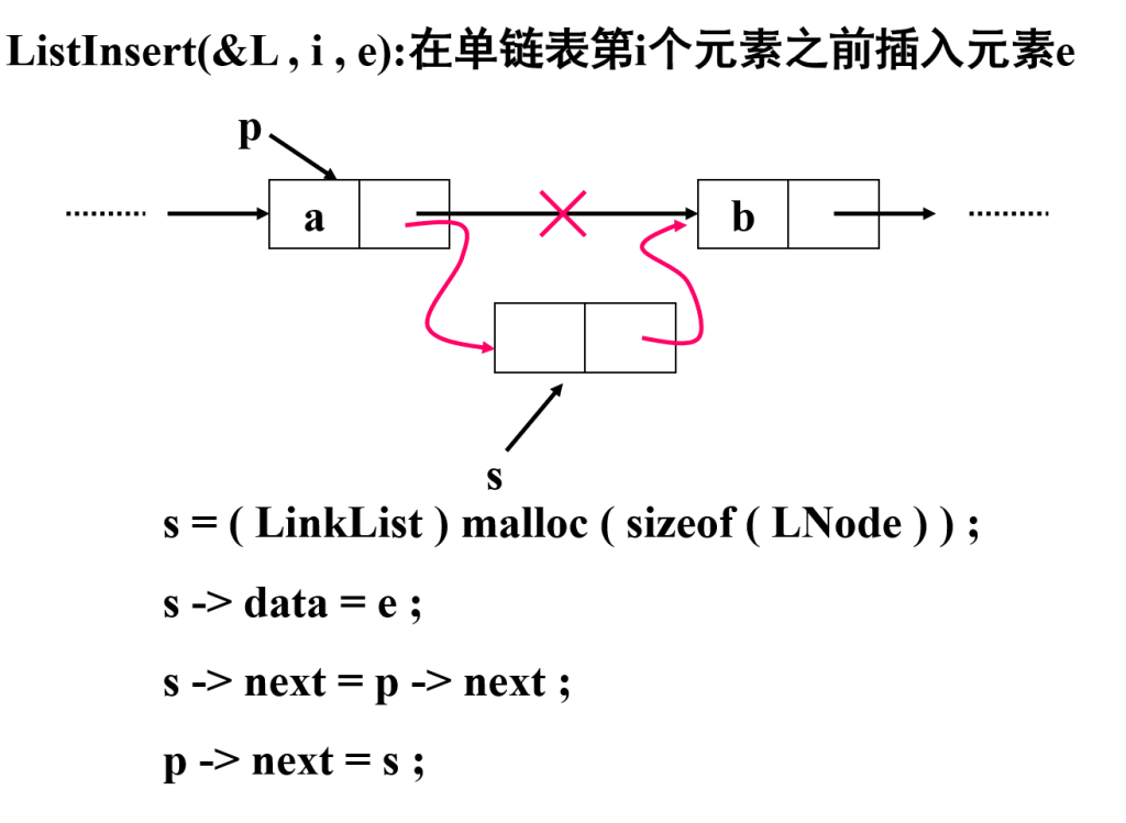 • 操作结果:在 L 中第 i 个位置之前插入新的数据元素 e,L 的长度加 1