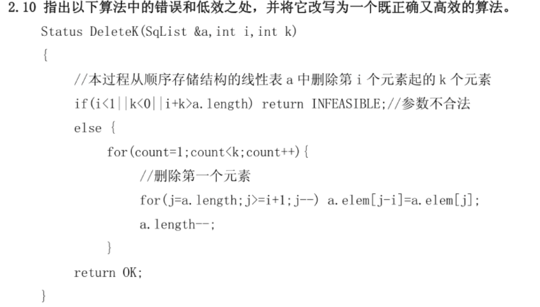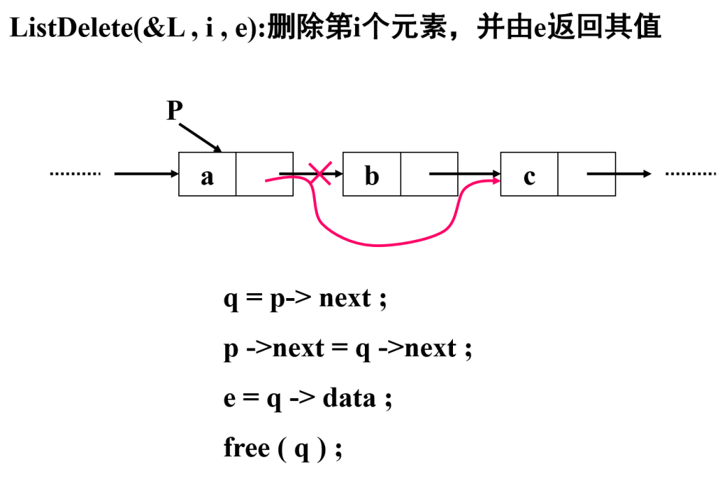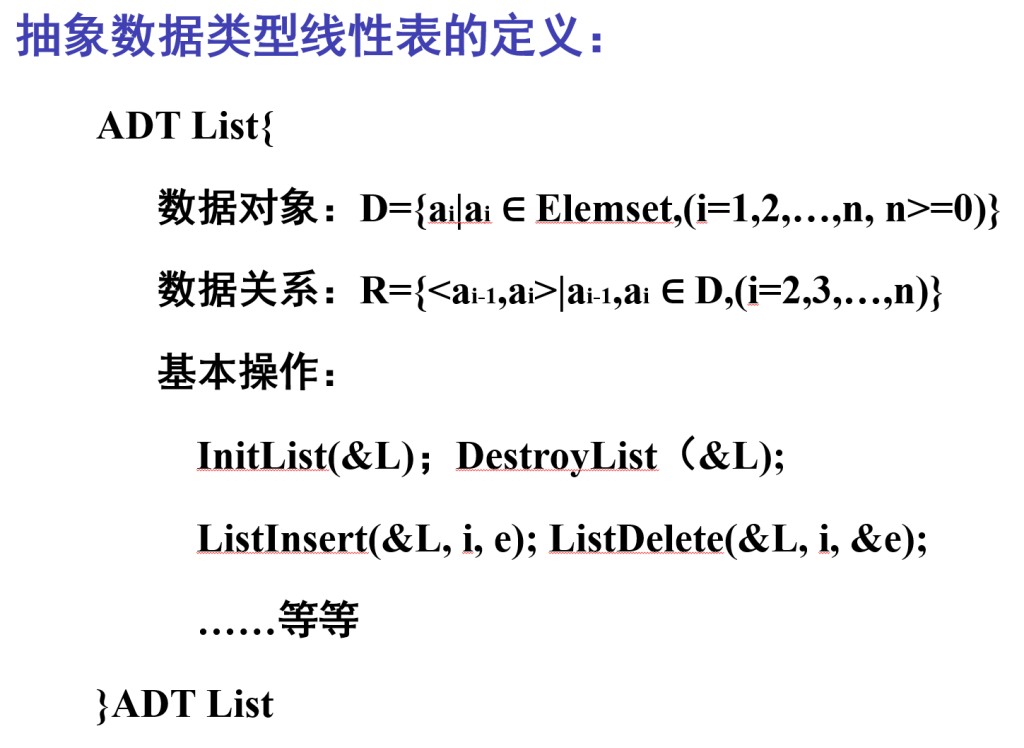 • 初始条件:线性表 L 已经存在,1<=i<=Listlength (L)