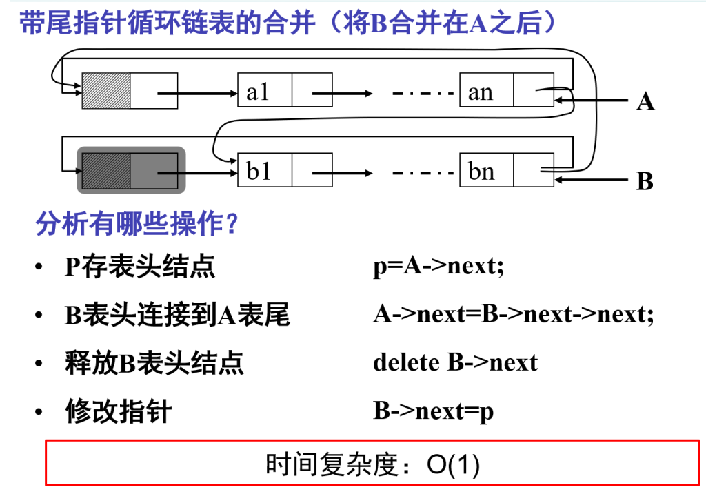p->next = q->next;   // 当前节点的 next 指向原头节点的 next(即第一个数据节点)