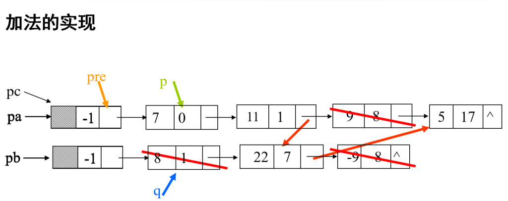 q->pre->next = p;        // q 前驱的 next 指向当前节点