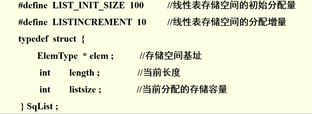 数组指针elem指示线性表的基地址,一旦因插入元素而空间不足时,可进行再分配: