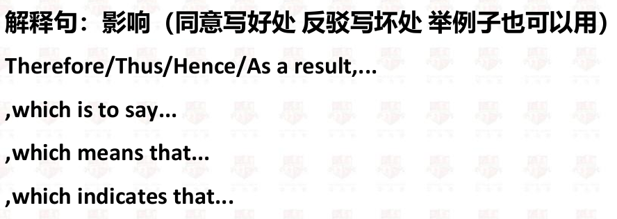 中心句:重复题干+解释句:影响(好处)