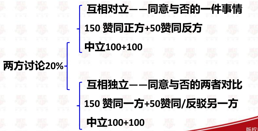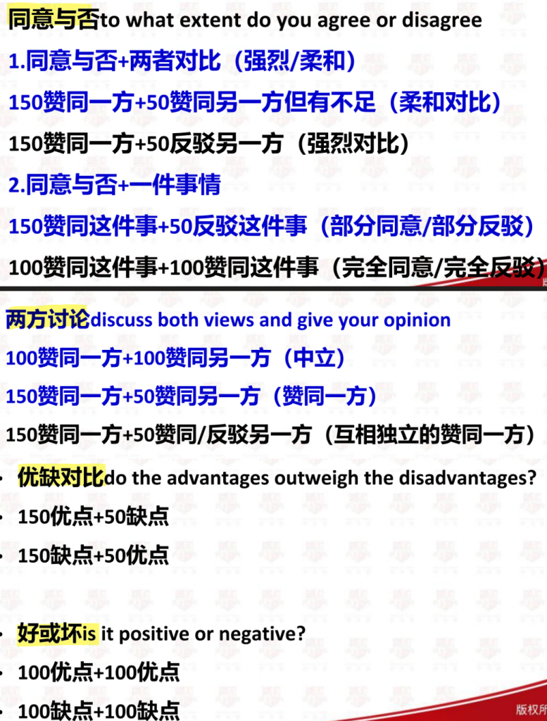 议论文的题型(85%):一个问题,包括同意与否、两方讨论、优缺对比、好或坏