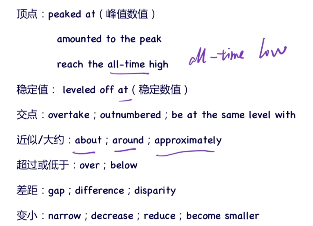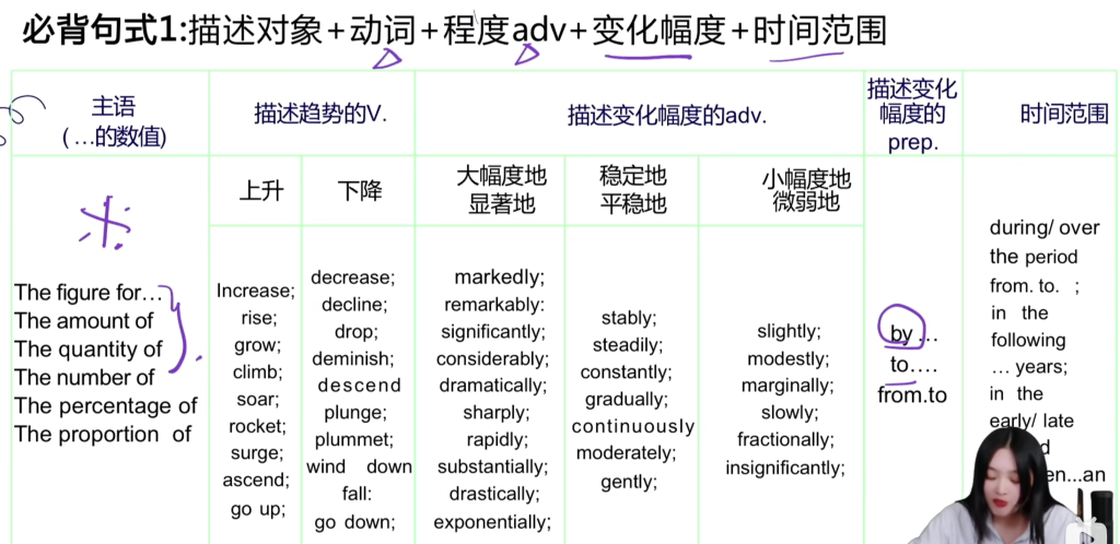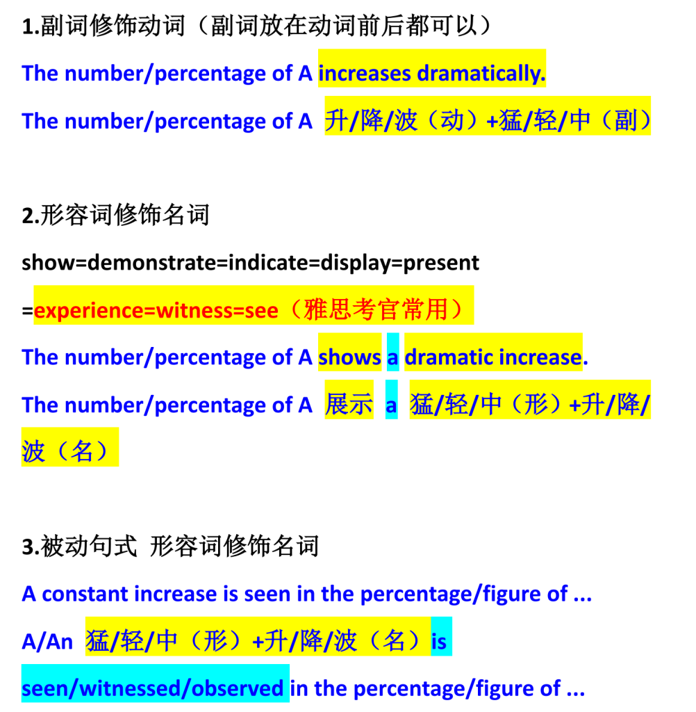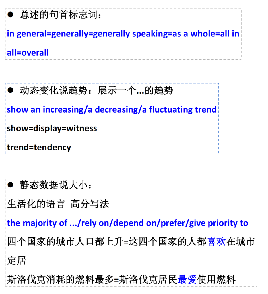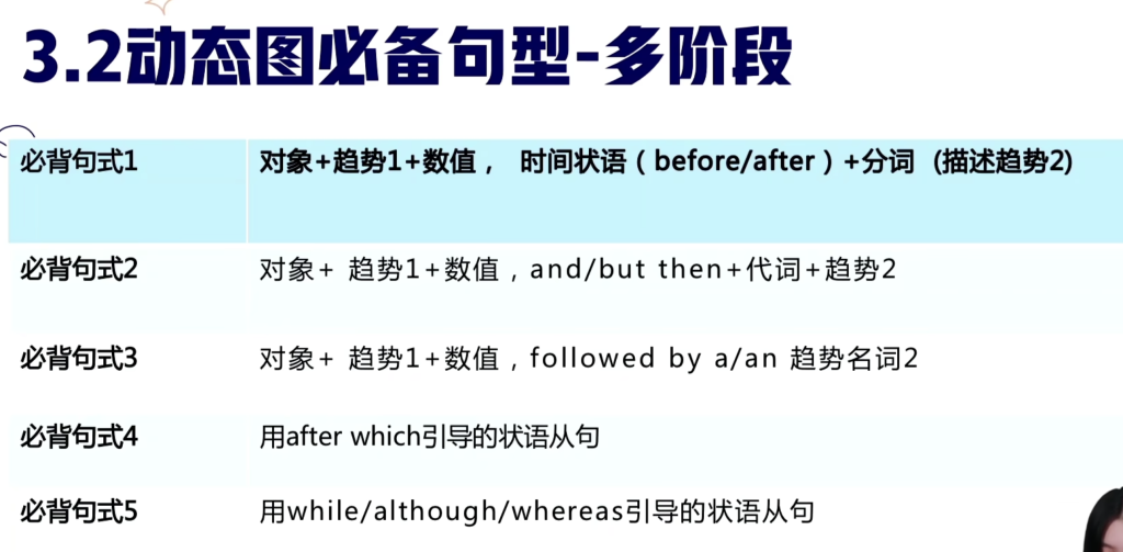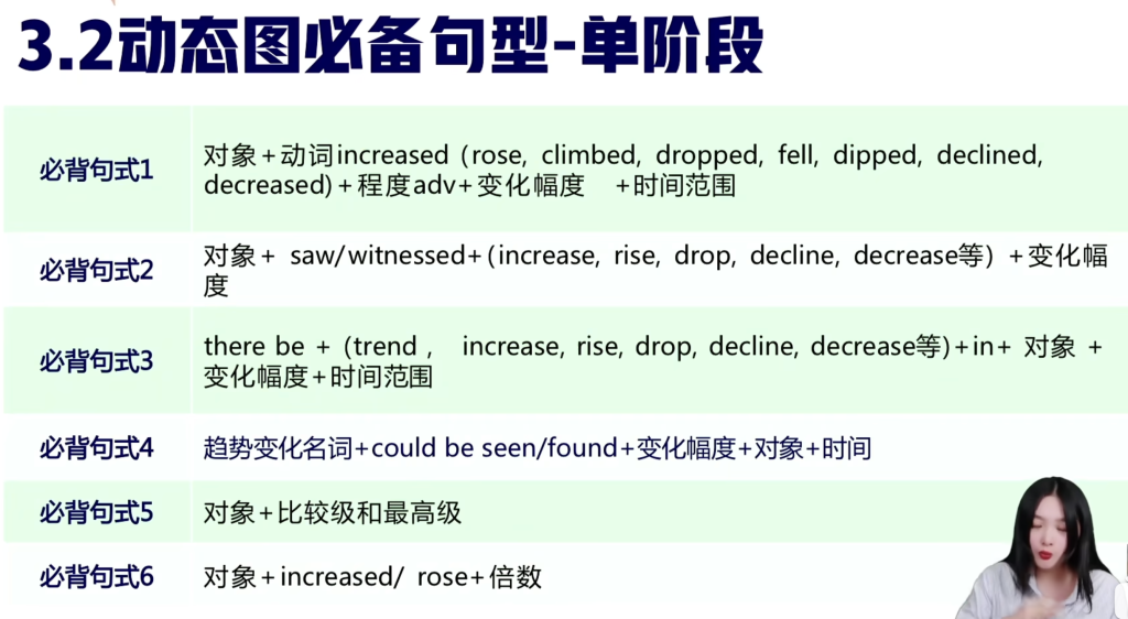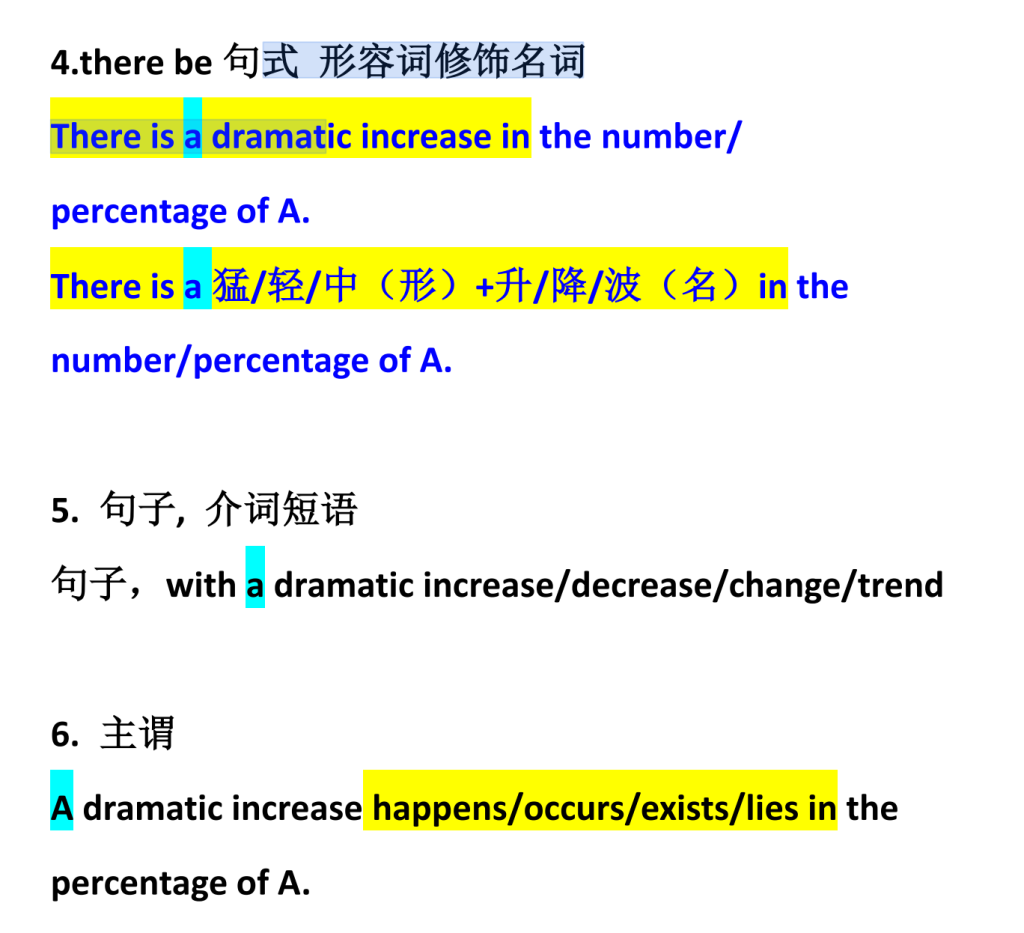 以上是小作文动态表达必用句式 都写对且换着用是 6.5 但不够 7