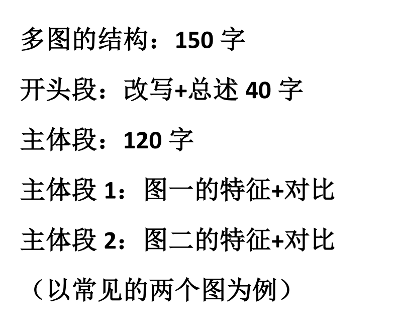 小作文:6 个图形,150 字 20 分钟(写作第二页的 2-3 行)