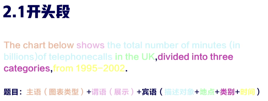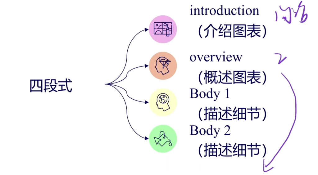 - 开头段:改写+总述——40 字 4min