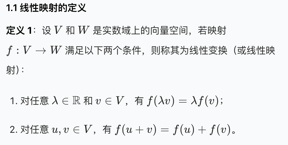 定义 :既是单射又是满射(即双射)的线性映射称为同构映射。若存在同构映射 \(T: V \to W\),则称向量空间 V  W 同构,记为 \(V \cong W\)