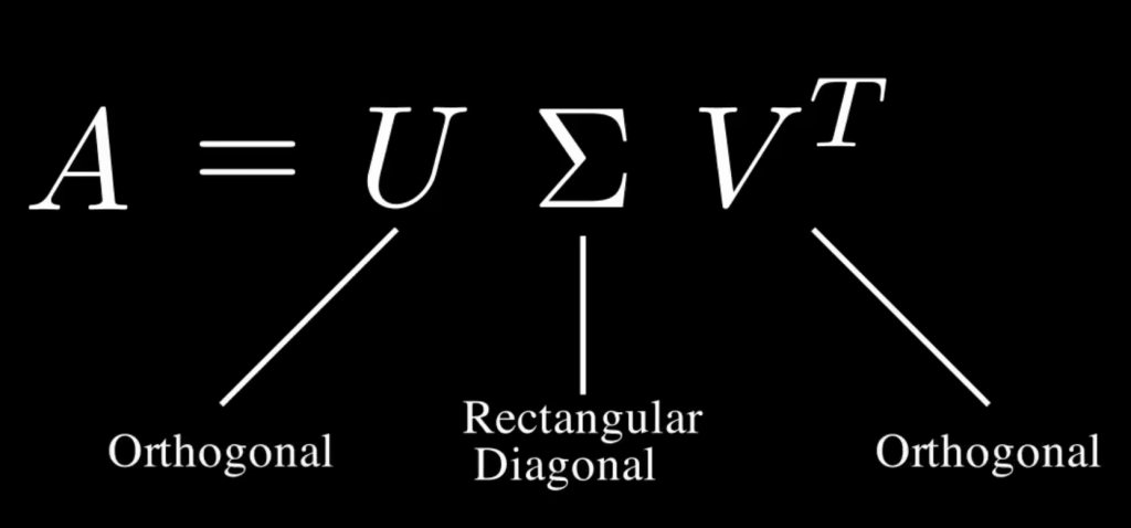 对任何 \(m \times n\) 矩阵 A,SVD 都能写成:\(A = U\Sigma V^T\),其中: