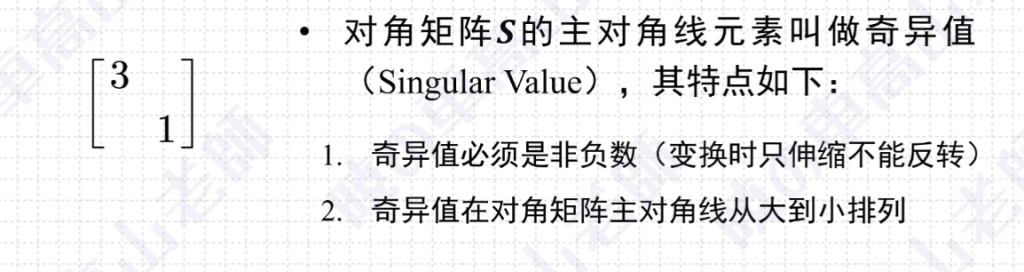 Singular 表示 “某方面独有且突出的特点”,此处对角矩阵表征的是伸缩变换,每个坐标轴方向都有属于自己的独特伸缩因子,因此叫 “奇异值”