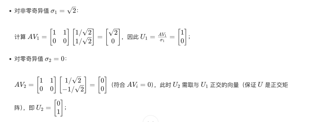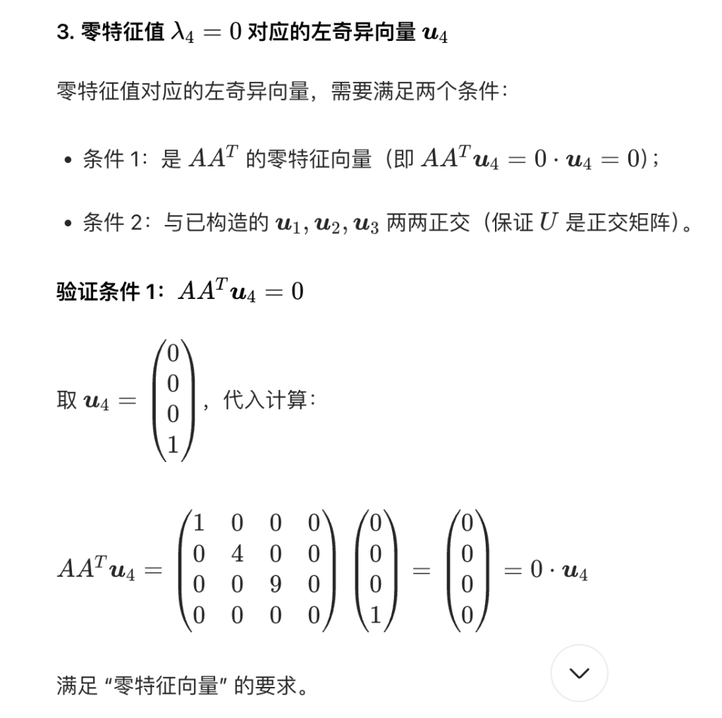 对于奇异值(特征值)为0时如何在最后用求U矩阵