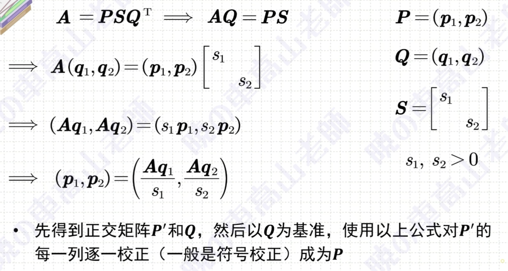 为什么左正交矩阵要通过右正交矩阵乘以原矩阵 / 奇异值计算