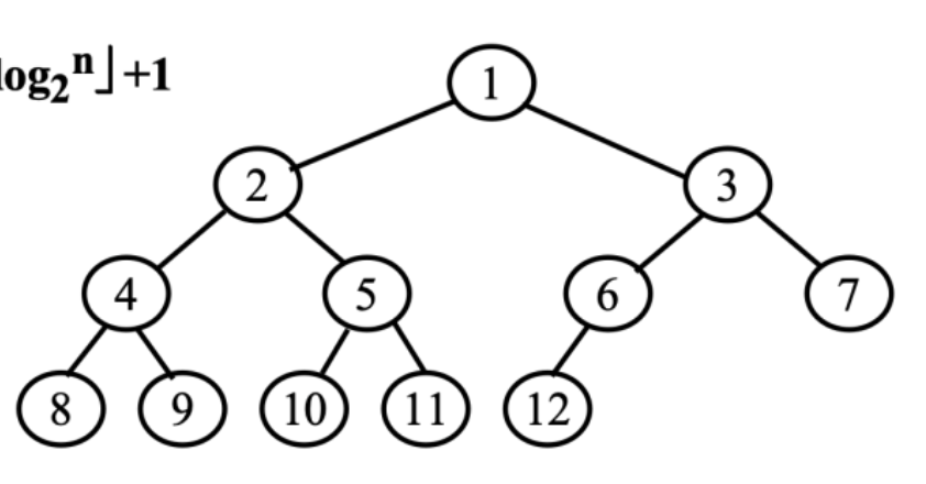- 具有 n 个结点的完全二叉树的深度为\(\lfloor \log_2 n \rfloor + 1\)