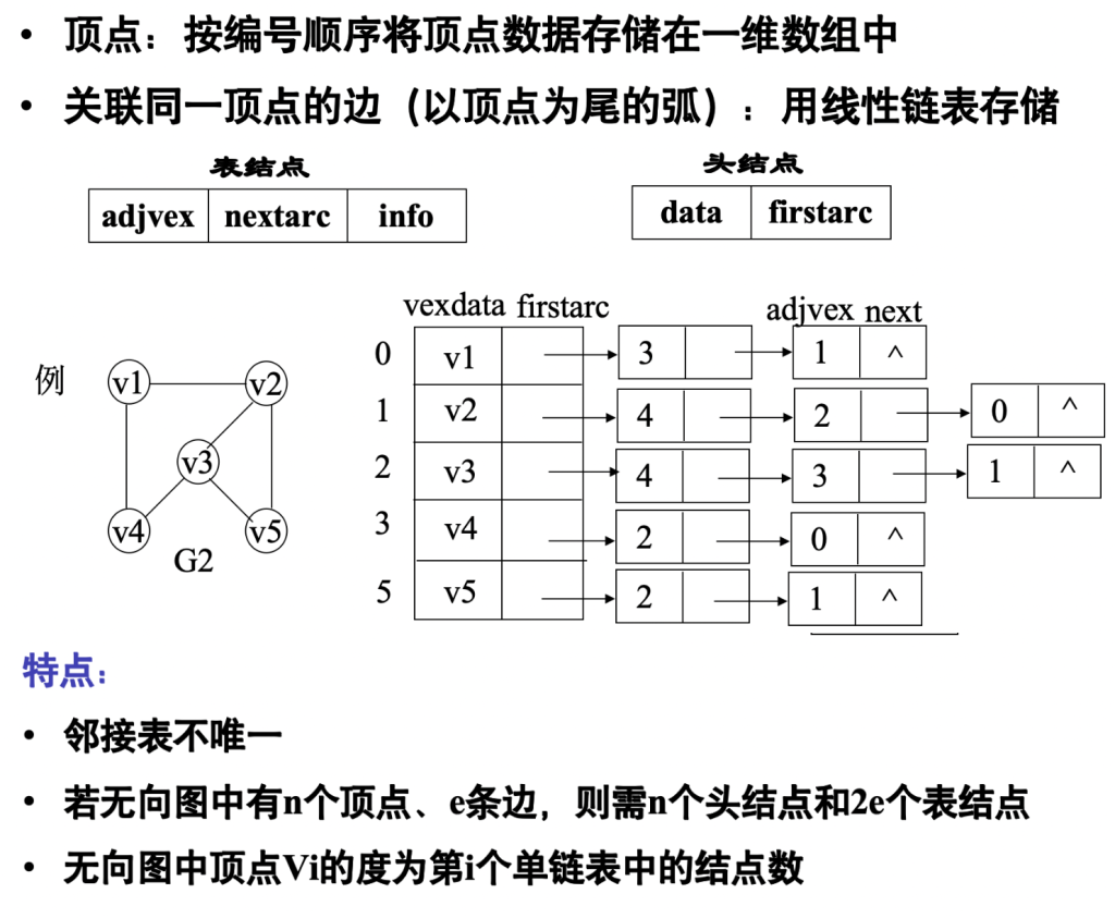 邻接表存储:\(O(n+e)\)(e 是边 / 弧的数量)