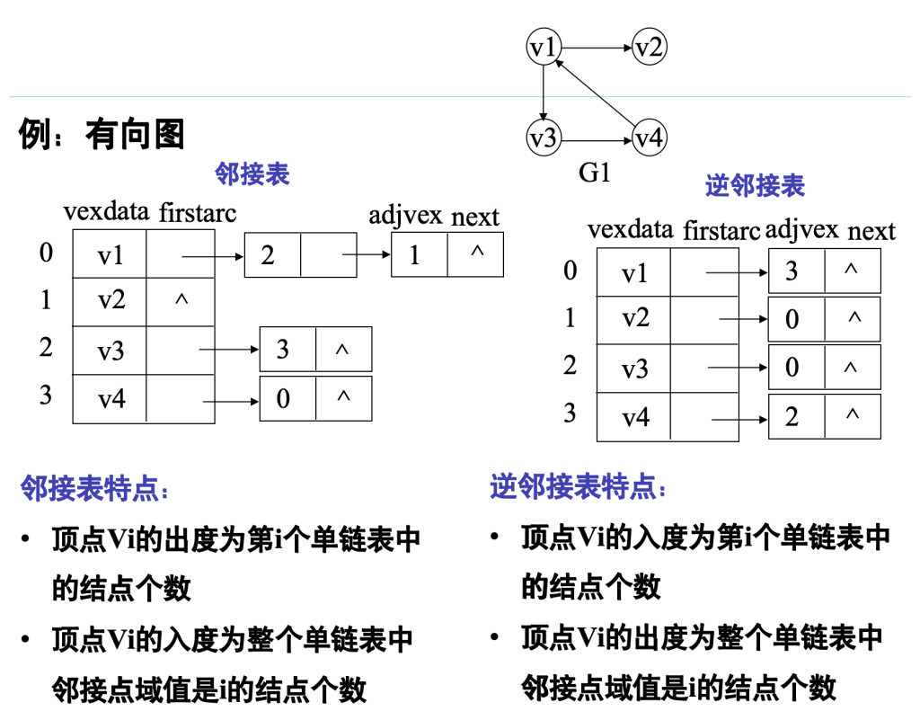 存在< vi, vj >,则称vi邻接到vj,vj邻接自vi(有向图)