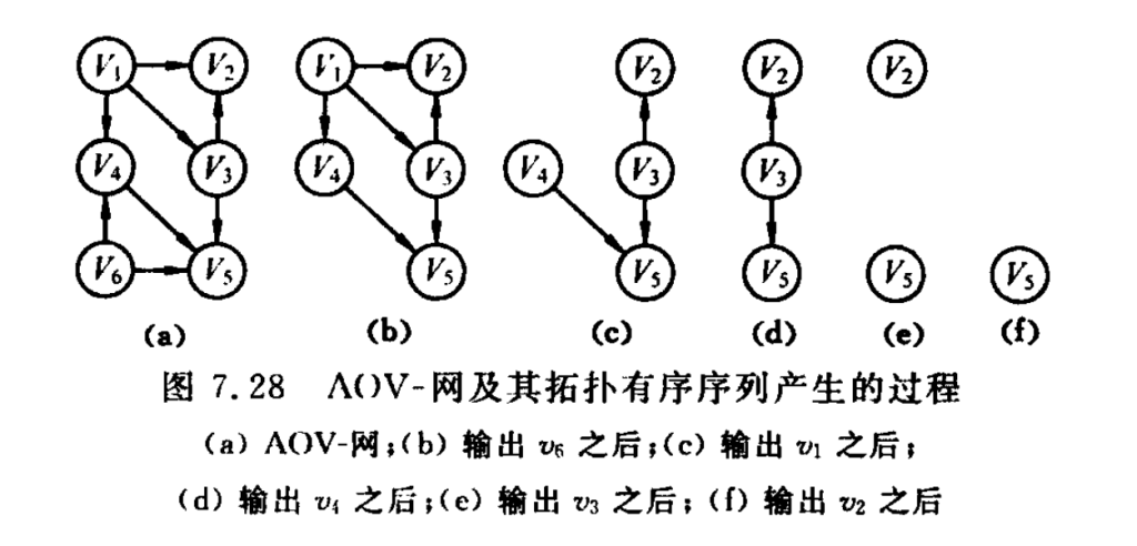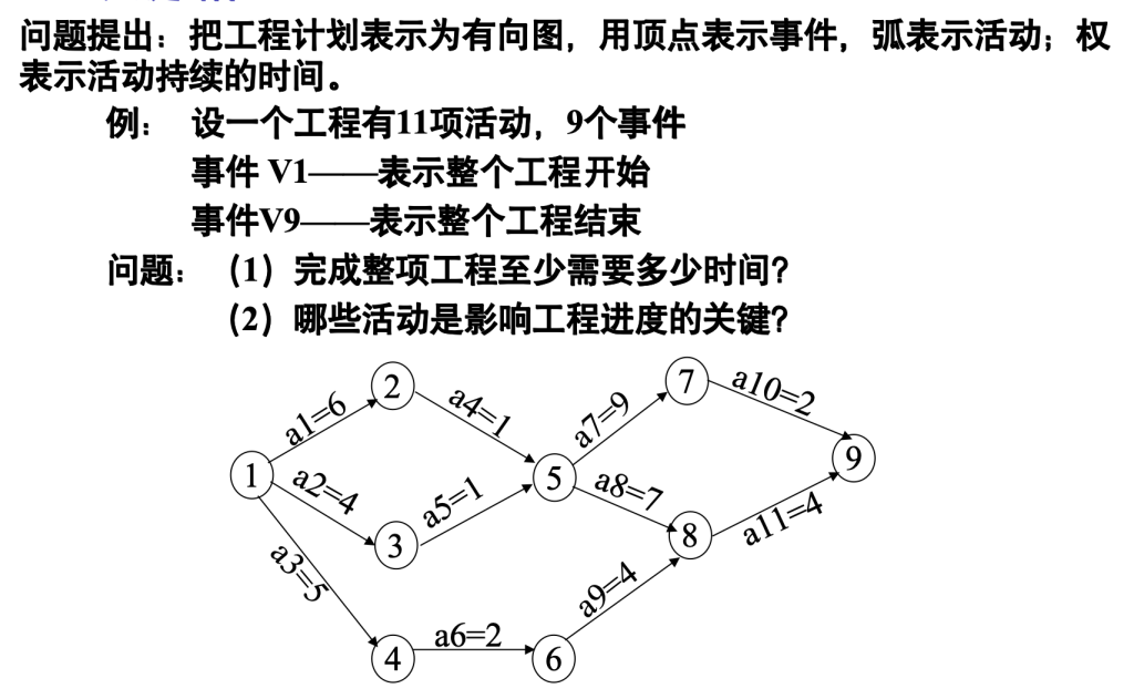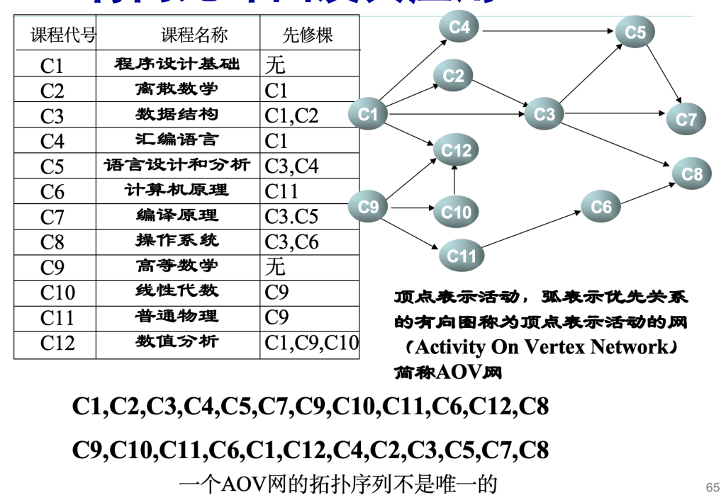有向弧——表示先决条件,若课程i是课程j的先决条件,则图中有弧<i,j>