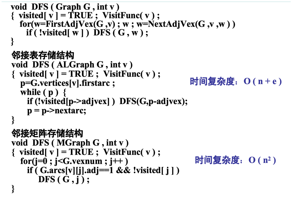 - “依次从 V 的未被访问的邻接点出发” 中 “依次”解决方案:按基本操作,先找第一邻接点,再找下一个,循环查找各邻接点。