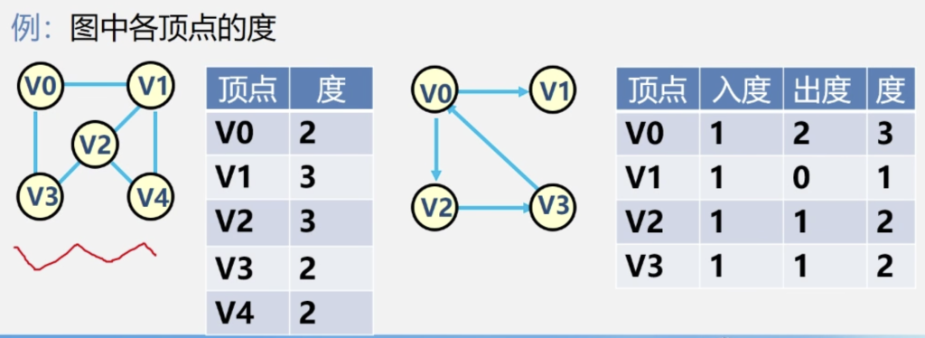 顶点的度:与该顶点相关联的边的数目,记为TD(v)