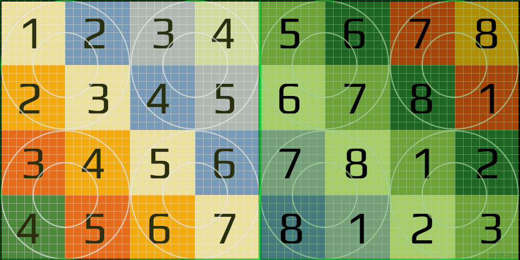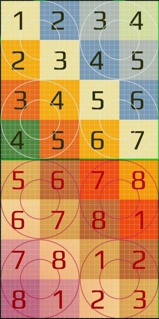 - 我给大块涂了颜色,这样能显示完整纹理的重复位置。