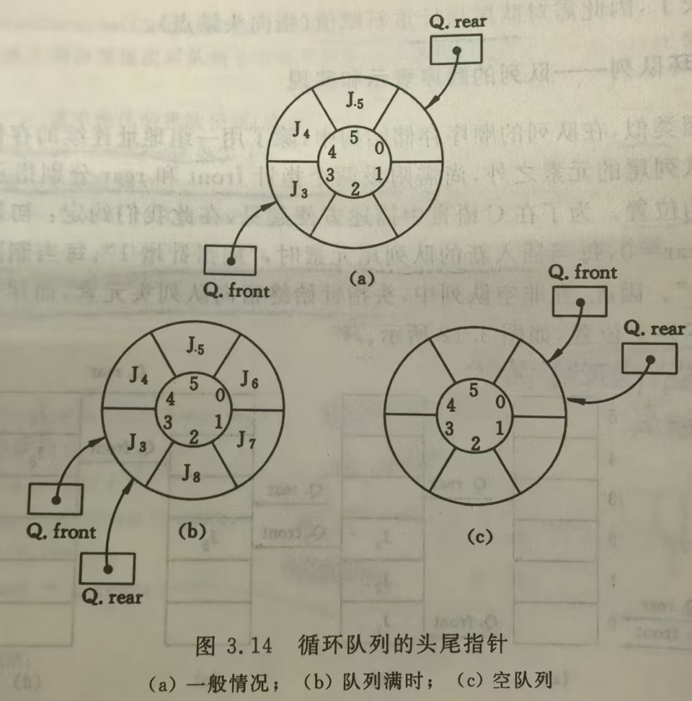 3.30 假设将循环队列定义为:以域变量 rear 和 length 分别指示循环队列中队尾元素的位置和内含元素的个数。试给出此循环队列的队满条件,并写出相应的入队列和出队列的算法(在出队列的算法中要返回队头元素)