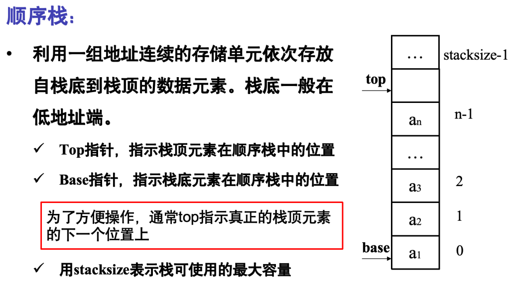 栈满:top-base=stacksize