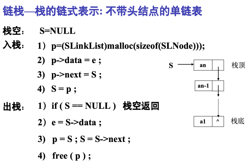 ✓ 初始条件: 栈S已经存在且非空