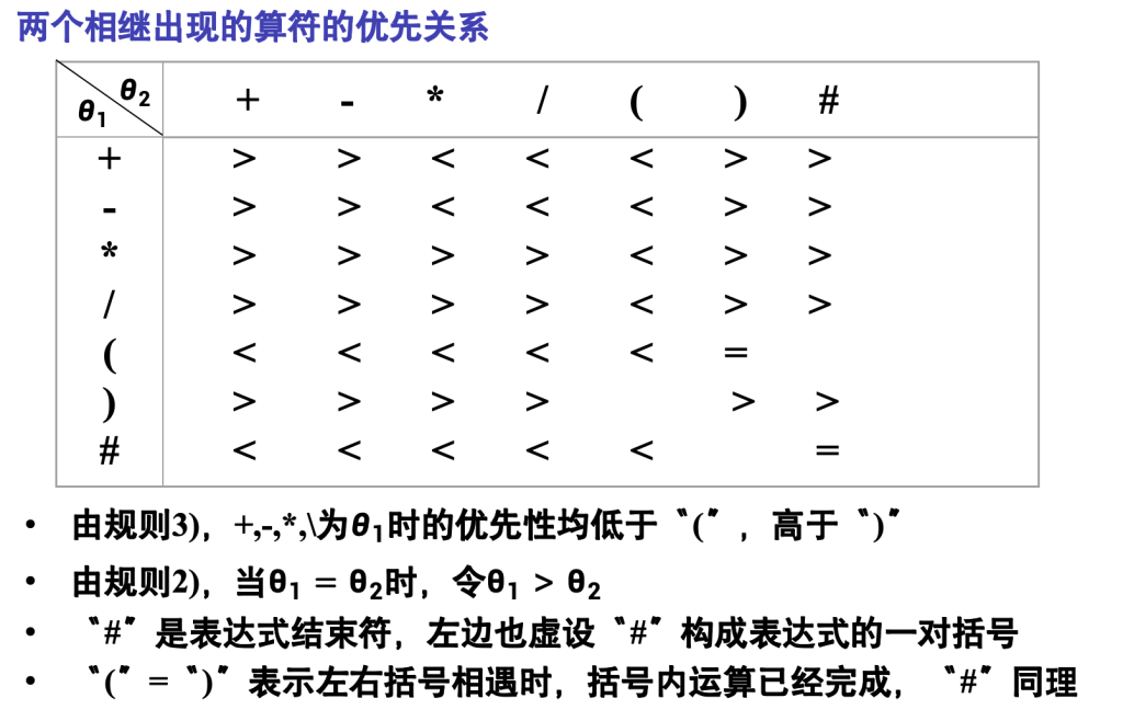 首先置操作数栈为空栈,表达式起始符为运算符栈的栈底元素