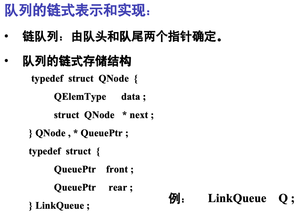 // 队尾指针初始化为 NULL