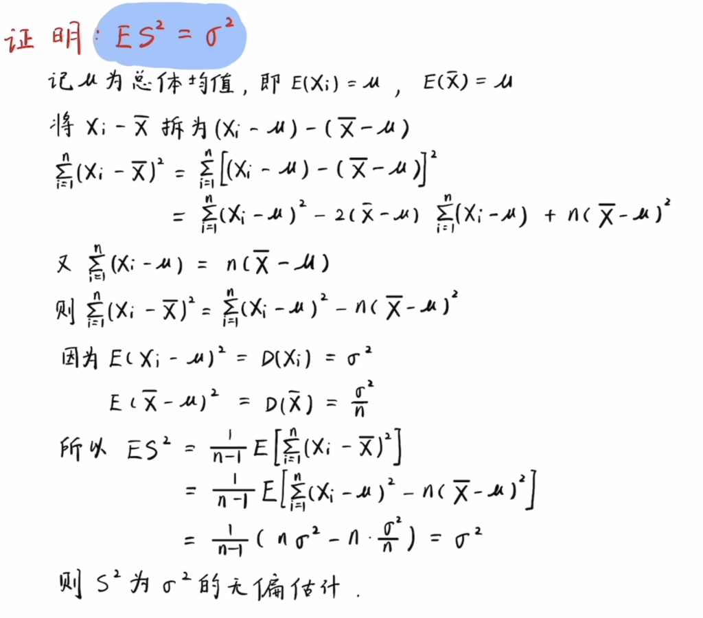 因为用除以n-1的样本方差估计总体方差是无偏估计,并不说完全没有偏差,而是满足下面这个式子ES ^2..