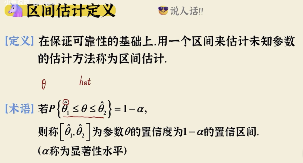 例:“我不确定总体参数到底是多少,但我可以说:我有 x% 的把握,它就在这个区间里。”