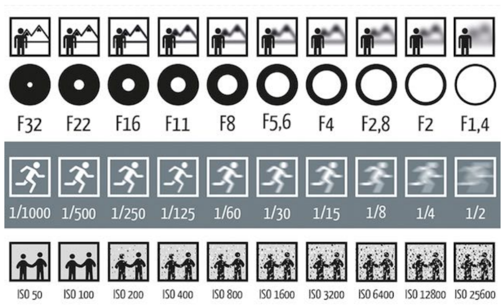 • 控制曝光的三要素:光圈数(包含A和f,后面会提)、快门、感光度 Aperture size, Shutter speed, ISO gain
