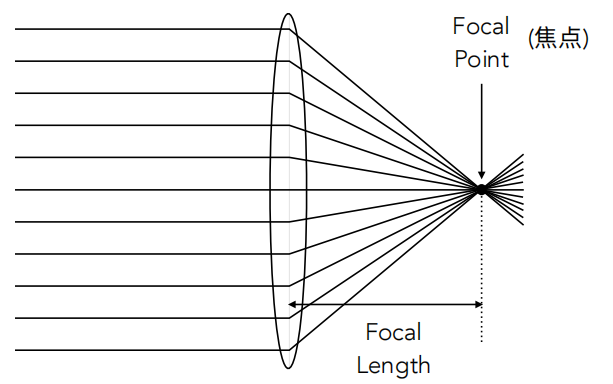 • 任意平行光穿过透镜会聚焦在焦点处