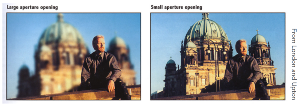 Aperture size(光圈大小):通过开关光圈改变f-stop(光圈级数)。大光圈会模糊,小光圈更清晰