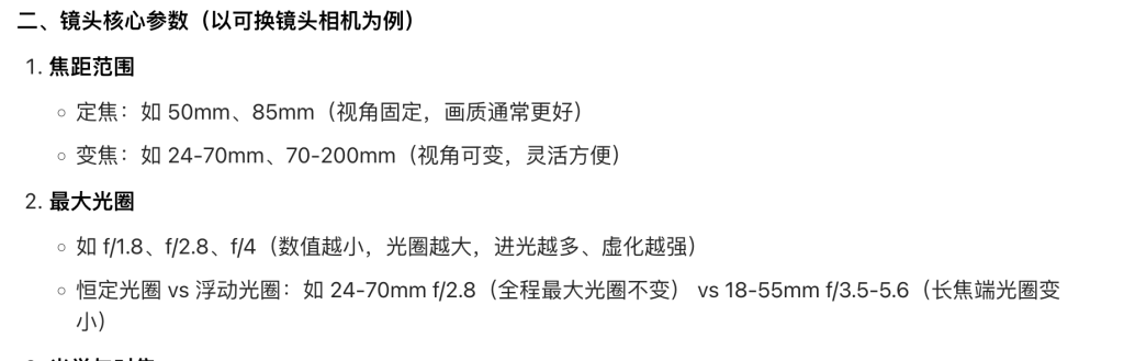 景深(Depth of Field, DoF):就是照片里,从 “最近清晰点” 到 “最远清晰点” 的一段距离范围。在这个范围内的物体都清晰,范围外的就会变模糊。