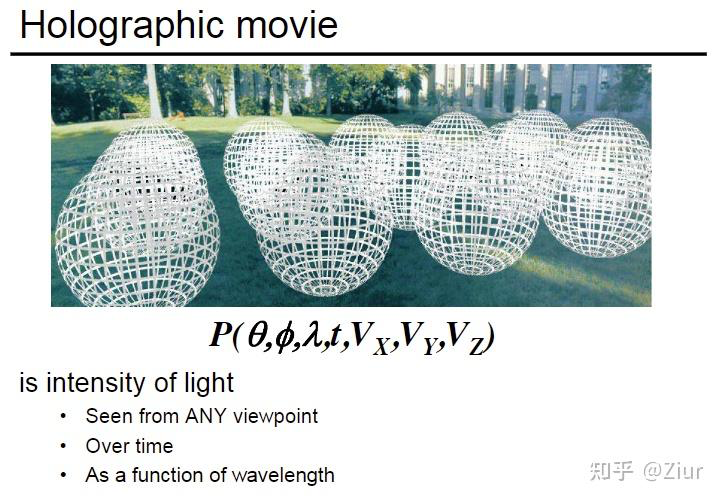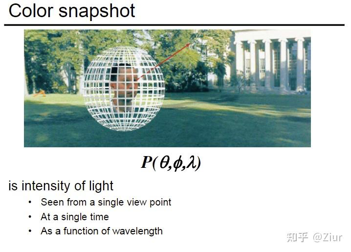 • 全光函数可以描述我们可以看到的所有事物的集合 The Plenoptic Function